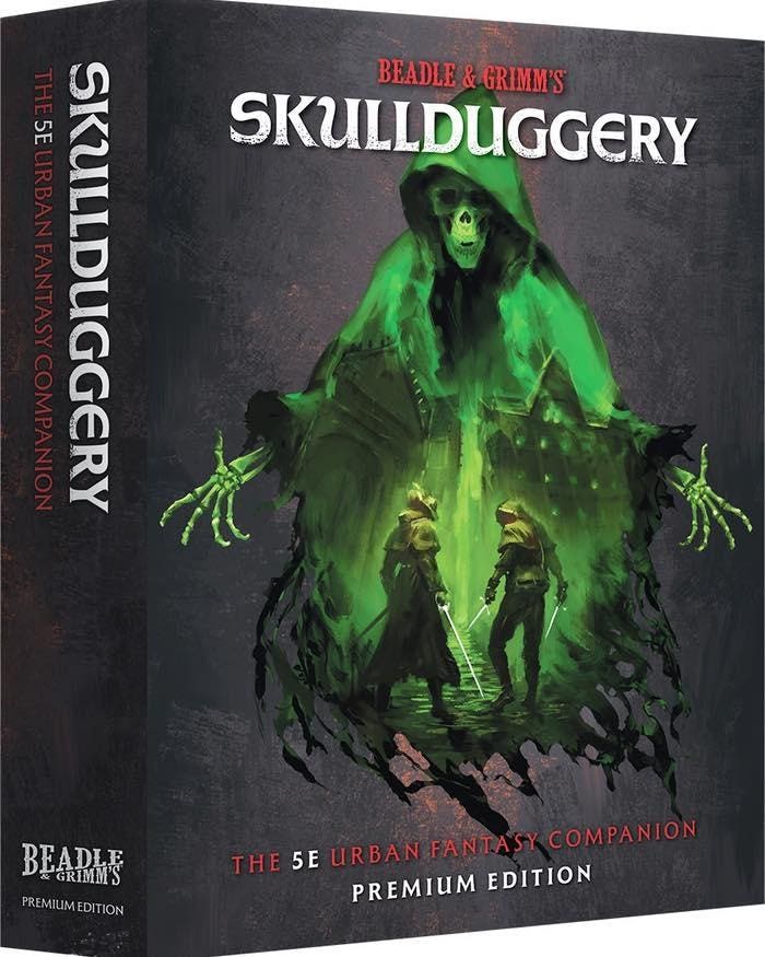 Beadle & Grimm’s are known for their support of official D&D products. They recently published a collection of lethal adventures that includes many of the ones featured on their TV show Faster, Purple Worm, Kill, Kill. Backers of Skullduggery can opt for a simple book or for a deluxe boxed experience from some top names in the D&D world.