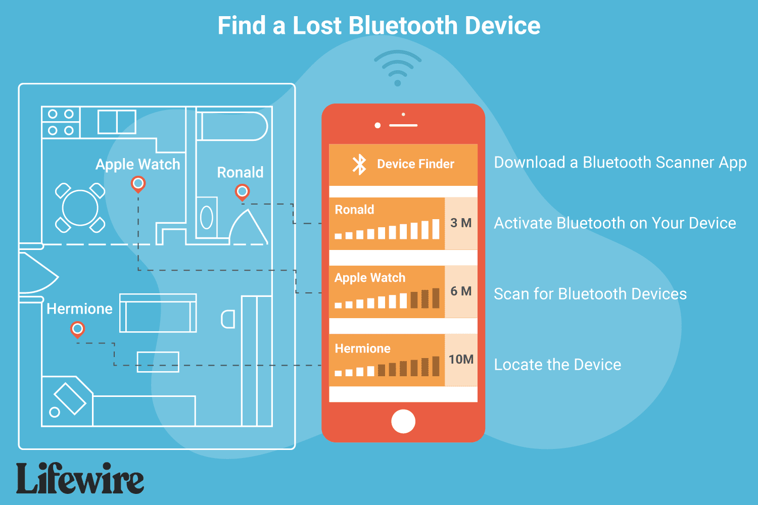 - Use a Bluetooth scanner app to find nearby devices by checking their signal strength.