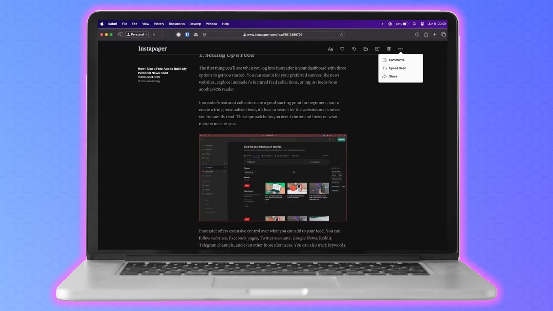 Instapaper is one of the best read-it-later apps—it’s been around for more than a decade! It’s available on the web, iOS, Android, and macOS, and you can use it to save unlimited articles, web pages, and videos for later reading and viewing.