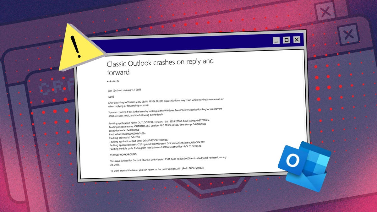 Those of you who use classic Outlook may have noticed the program acting more temperamental than usual. There’s a reason for that. In a recent support article, Microsoft acknowledged that Outlook may crash when you start a new email or when you reply to or forward an existing email.