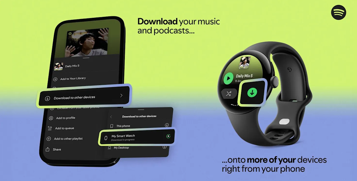 Spotify is rolling out a new feature that lets Premium subscribers remotely download playlists to additional devices. For instance, a user could initiate a download on an iPhone for an iPad or for a backup phone ahead of a trip.