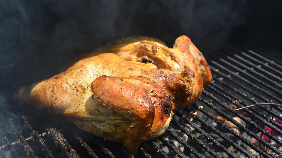 Baker recommends a charcoal grill but gas works fine, too.