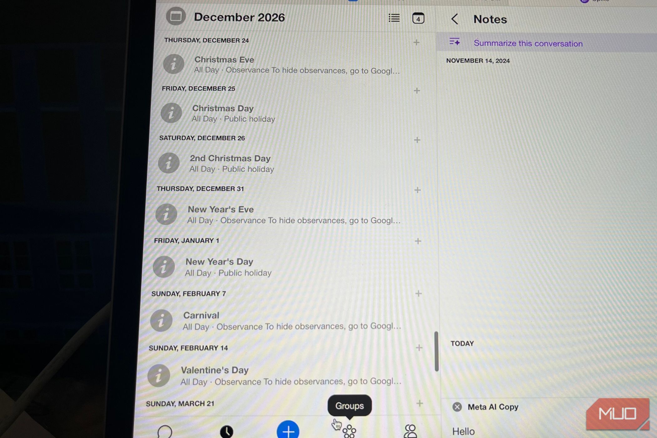 If you’ve scrolled too far, you can jump back to the current day. Doing so makes it easier to keep track of current and upcoming events.
