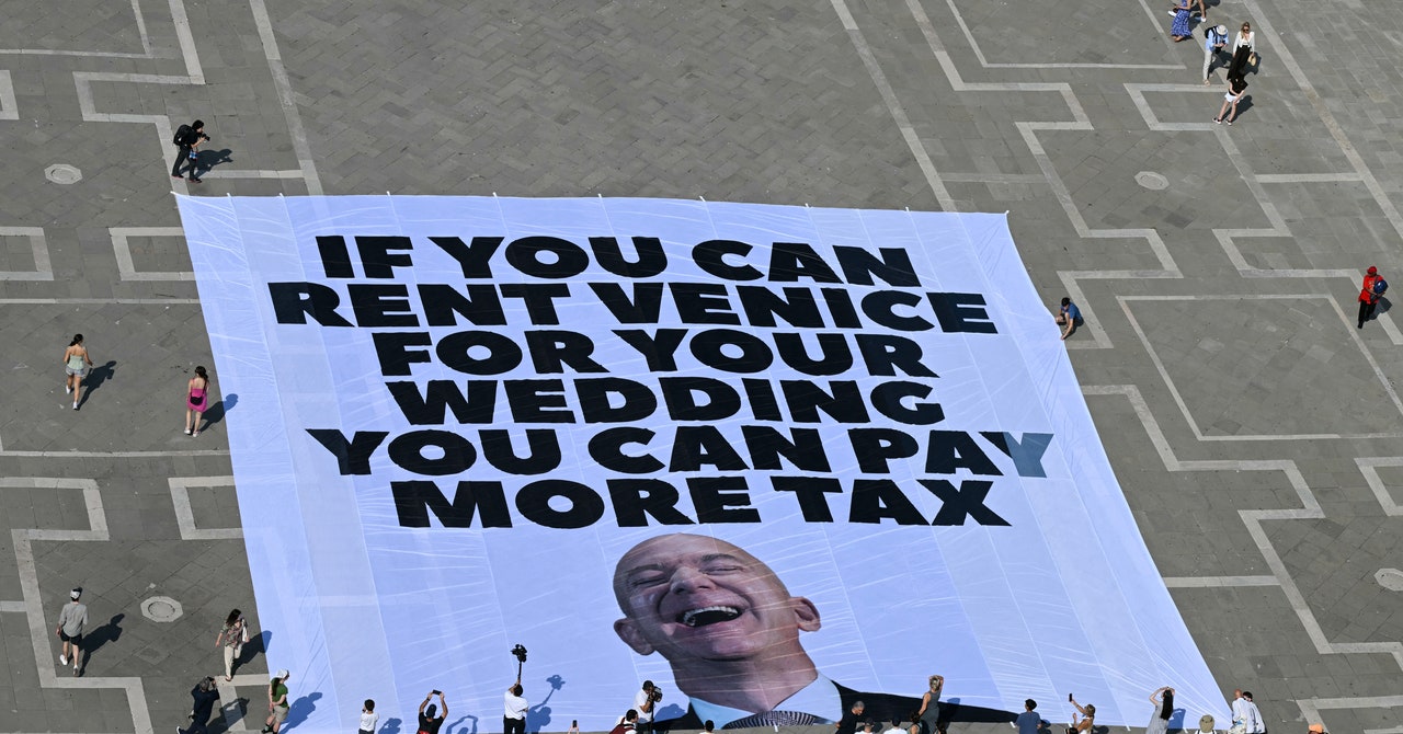 The lavish wedding between Amazon founder Jeff Bezos and his partner Lauren Sanchez is scheduled for June 26-28 in Venice, Italy. For months, however, protests against the event have taken place in the city, intensifying in recent days with the “No Space for Bezos” campaign—which refers to his aerospace investments—over the social and environmental impacts of the wedding, which will occupy much of the historic lagoon center that’s already under pressure from high tourist flow.
