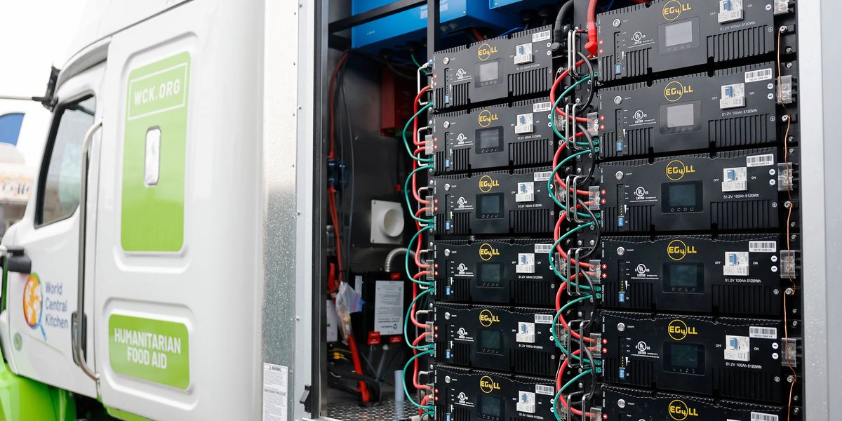 The batteries are a mobile version of a battery energy storage system, or BESS. In the past, BESS has been used in stationary locations to store grid-scale electricity to help balance supply and demand, such as storing solar energy so that it can be used at night, or storing backup power in case of outages. The improvements to both the chemistry and engineering of lithium-ion batteries has made it possible to move megawatt-level power on the back of a semi truck.